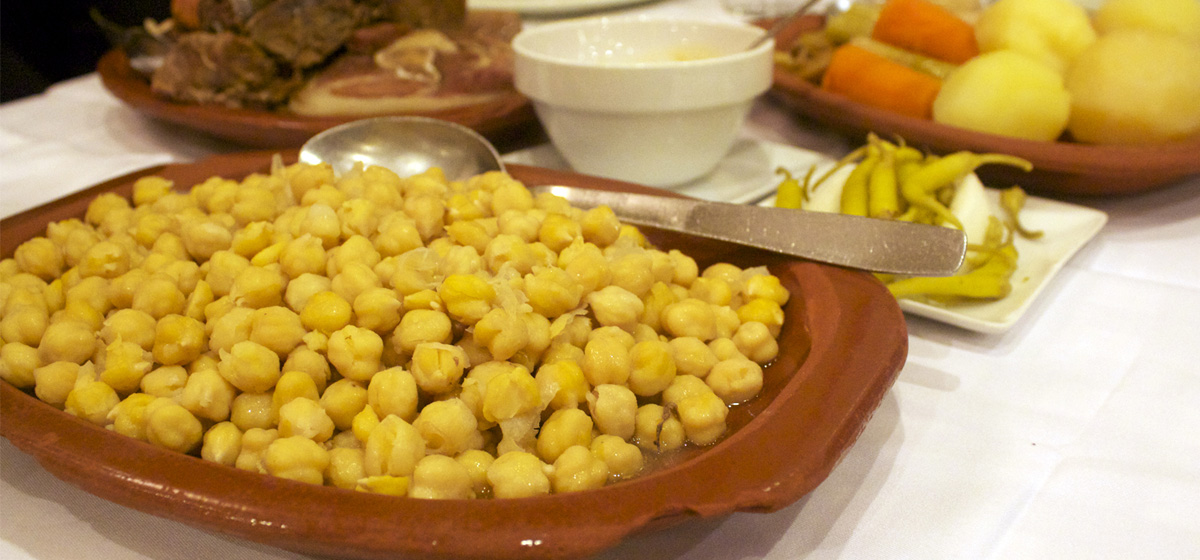 La base de un buen cocido son los garbanzos, y en esta ocasión vienen de unos huertos en Cabañas de Polendos, en Segovia, donde producen las toneladas necesarias para el restaurante. Su acabado debe ser al dente, ni duros ni blandos si no todo lo contrario. Lo importante es que queden cremosos en la boca, que la piel no se note en la boca y absorban todo el gusto del cocido.