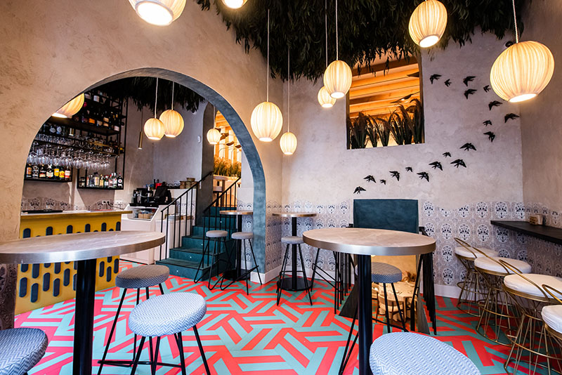 La decoración resulta sumamente atractiva, y siempre es agradable ver como se reinterpretan los espacios en el Madrid más castizo, conservando algunos elementos de su antecesor, como los azulejos de Talavera de la Reina con motivos de garzas y algunos antiguos muebles restaurados.
