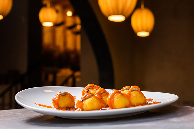Y claro que el ambiente tabernario tiene sus clásicos. Esas tortillas gourmet hechas al momento también merecen mención aparte y son rivales de unas patatas con pulpo a la parrilla y aceite de oliva y pimentón. ¿Más ideas? Huevos rotos de corral con fritura de ortiguillas de mar son puro sabor o la Oreja de cerdo crujiente con salsa brava, huevo frito de corral y tartar de carabineros. Algunos de sus platos, ya de por si excepcionales, se convertirán en superlativos con un pequeño punch, como la Ensaladilla Rusa a la que se le puede añadir caviar, o a la tan de moda Tarta de queso cremosa, que aquí será más IN aún al rallarle trufa negra.