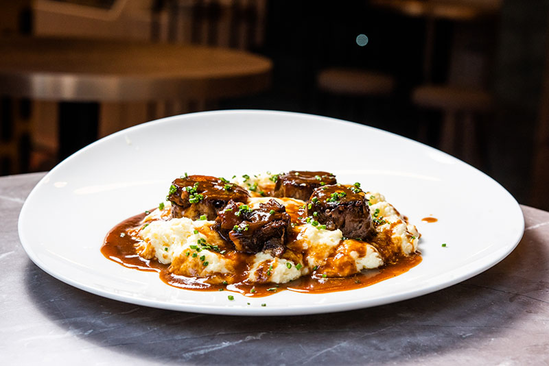 Algunos platos ya están ganando incondicionales, como sus Bravas estilo Casa Mories -su forma de elaborar las patatas es pura sutileza y la salsa brava, ‘de verdad’-, sus sofisticadas croquetas, el Steak Tartar de vaca vieja madurada, con patatas fritas, montado sobre pan brioche, que puede ser tal cual un perfecto entrante o pedirlo como plato principal con tuétano a la brasa.