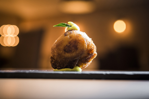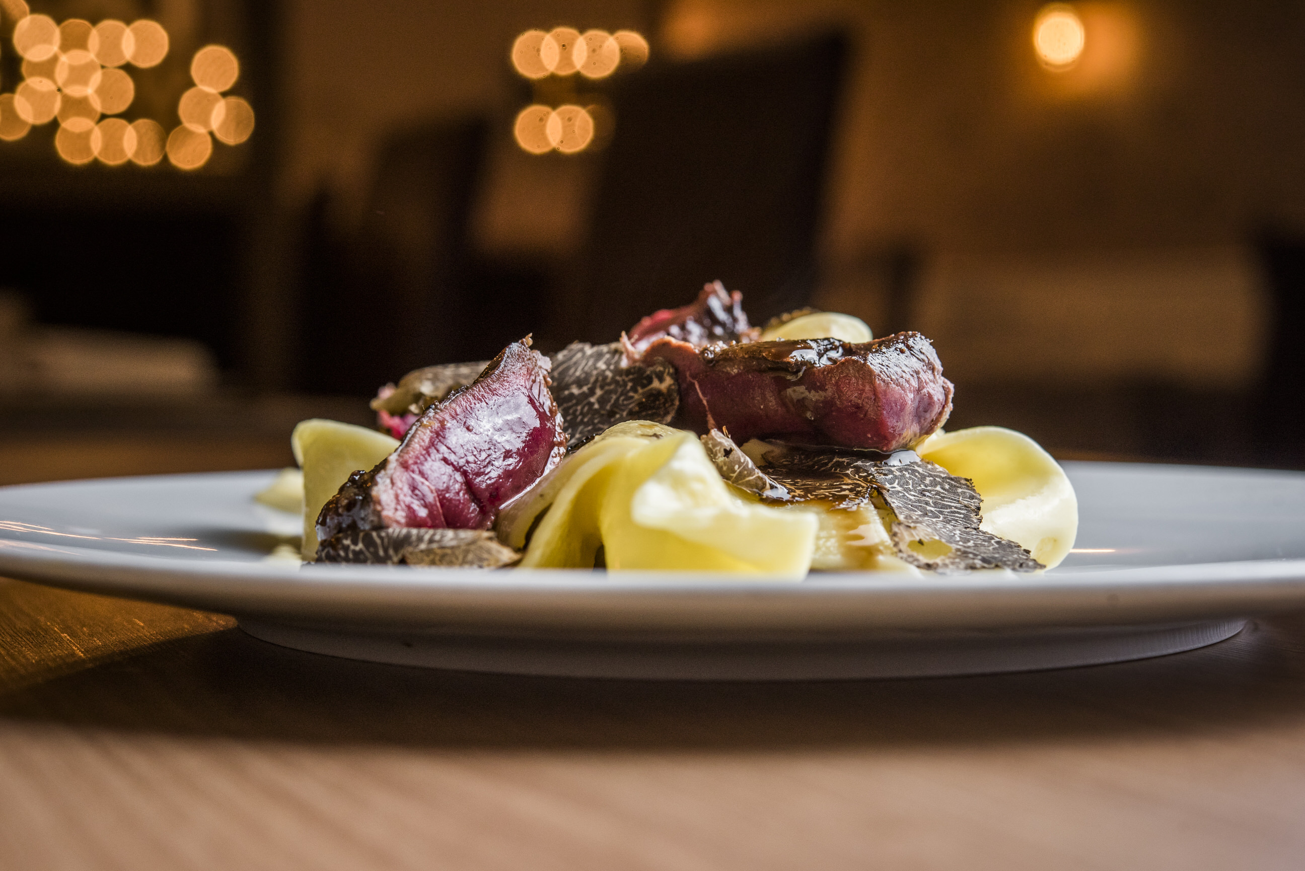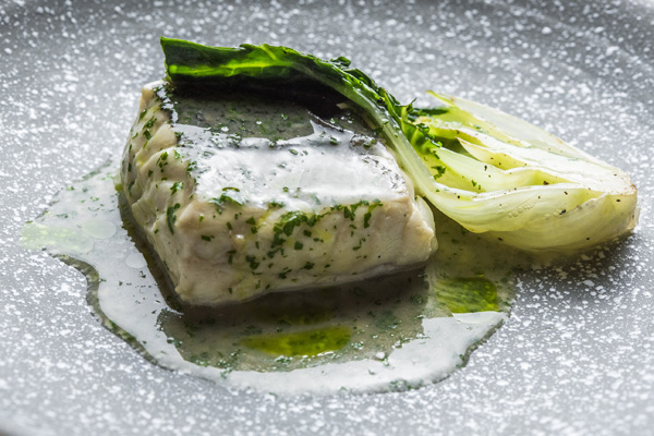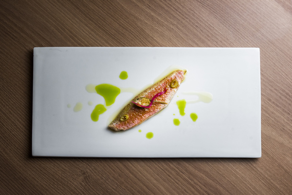 Y luego nos ponemos el uniforme de pescador… Seguimos con delicias ‘De la mar’, como sus Buñuelos de merluza con alioli verde, Salmonetes escabechados o Merluza en salsa verde con pack choi… Quienes sean más de ‘Hidratos de carbono’, que no se pierdan su Pappardelle artesano con torcaz y trufa o el Ravioli de ciervo con salsa topinambur.