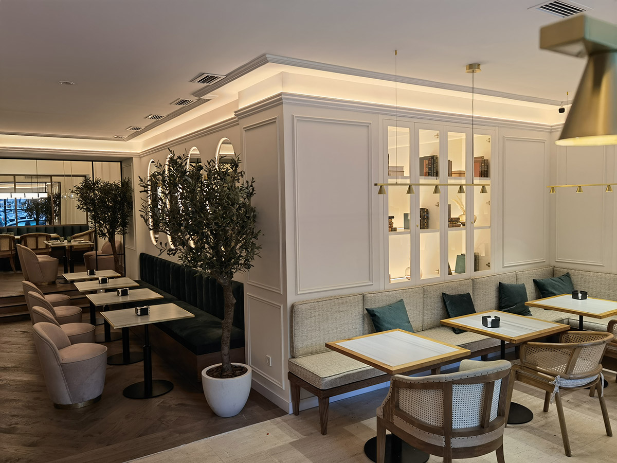 En el local de Paseo de la Habana de nota el nuevo espíritu de la marca. Su decoración tiene algo de salón privado de la Castellana y mucho de casa de comidas moderna. El obligado pincho de tortilla de media mañana se transforma en un buen menú ejecutivo, con una fórmula de plato único que soluciona la vida mucho oficinista que quiere comer bien, o una cena en familia en el barrio porque hoy no queremos cocinar. Sus raviolis o sus albóndigas son un buen ejemplo de como solucionar con calidad ese oficio de dar de comer cada día al cliente y solucionar con creatividad las nuevas tendencias gastronómicas. Los chipirones siguen siendo de escándalo, y sus tacos de merluza pueden ser adictivos. Sus alcachofas o su tartar de tomate animan al más aficionados a la huerta.