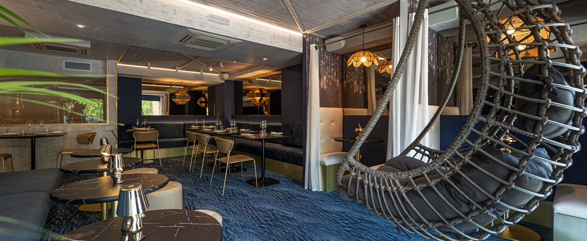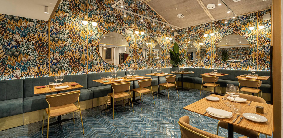 En la versión madrileña de La Morena, ubicada en el 210 del Paseo de la Castellana, tratan de distanciarse de convencionalismos sin perder la identidad de sus platos. Parte de este criterio parte de la decoración que es sumamente agradable y acogedora de la mano de Fran Cassinello del estudio Mandalay Interiorismo que ha creado un espacio acogedor y fresco al mismo tiempo. Se han utilizado varias gamas de azules mezcladas con blancos y dorados para dar calidez, glamour y lujo alfombras con dibujos de olas, suelos de cerámica de la firma italiana Emil que brillan como si estuvieran mojadas por el agua y cortinones de terciopelo que consiguen sensación de confort y teatralidad. Realmente un lugar bonito.