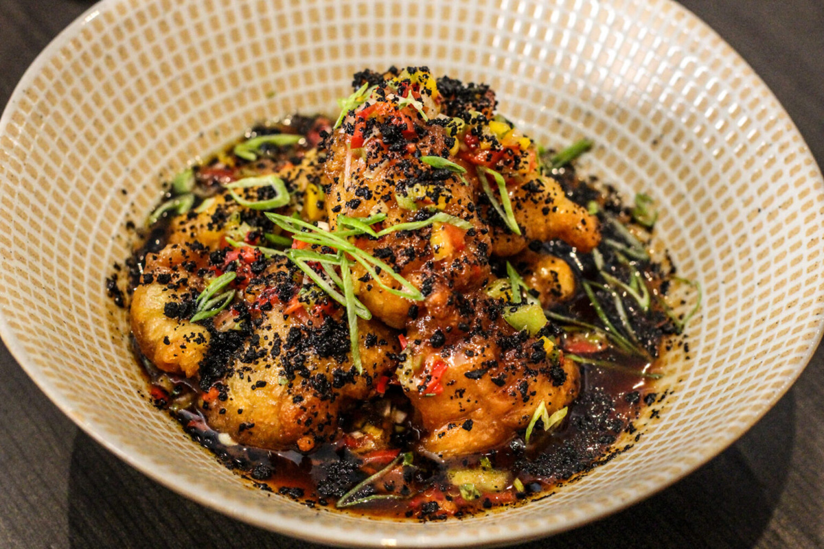 La identidad de Tarifa se aprecia en la pasión por los productos del mar. Imprescindible el ceviche filipino o los calamares rellenos de salda tomyum. El bacalao con aceite de cilantro estimula la memoria gustativa y sirve para crear opinión frente a su carrillera al curry.