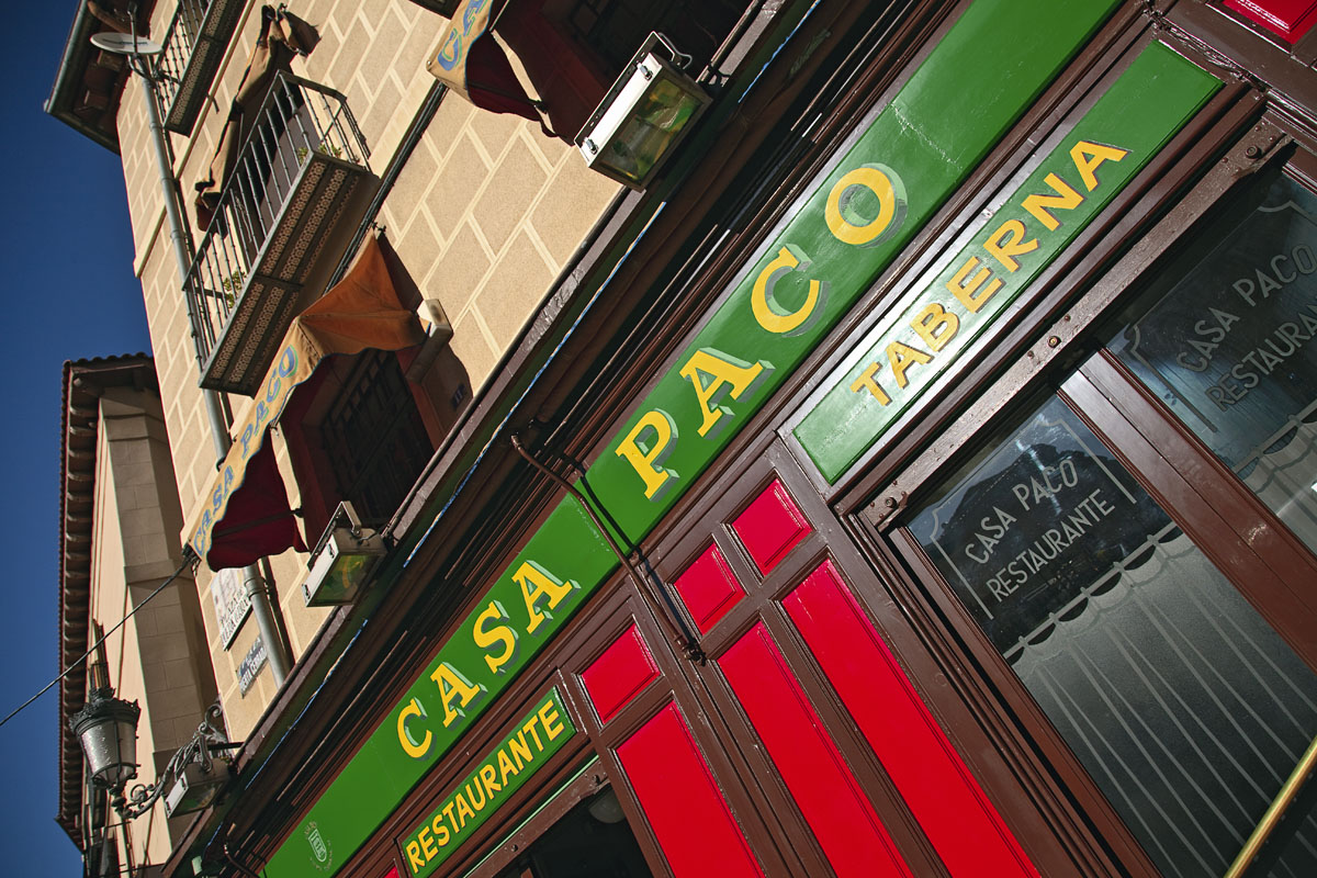 Su fachada lo dice todo. Roja y verde, con la fecha de apertura junto al nombre. En Casa Paco no hay nada “vintage”, todo es absolutamente auténtico. ¿En qué consiste su secreto? Precisamente en dar lo que promete, y nada más: comida tradicional al estilo mediterráneo, un restaurante experimentado y mucha devoción hacia el cocido y los callos madrileños y lugar adecuado para el jolgorio y la caña.
