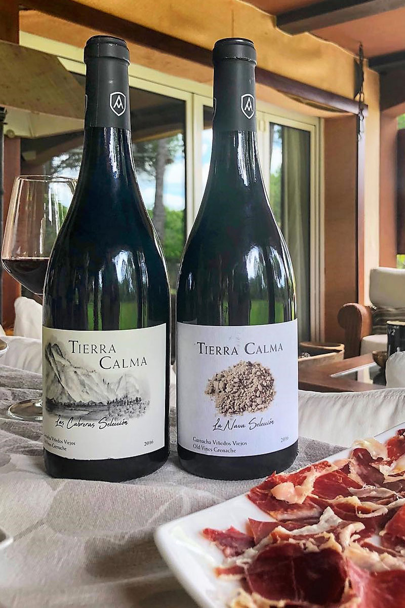 Tierra Calma es un verdadero santuario natural es donde se despliegan veinte hectáreas de viñedos casi centenarios, que en muchos casos estaban olvidados. Esas garnachas viejas, el buen asesoramiento del reconocido enólogo Francis “El Largo”, la pasión de Elena y Rafael por esta tierra y el buen saber de algunos paisanos de la zona son los pilares de un producto diferente, donde la calidad justifica el precio.