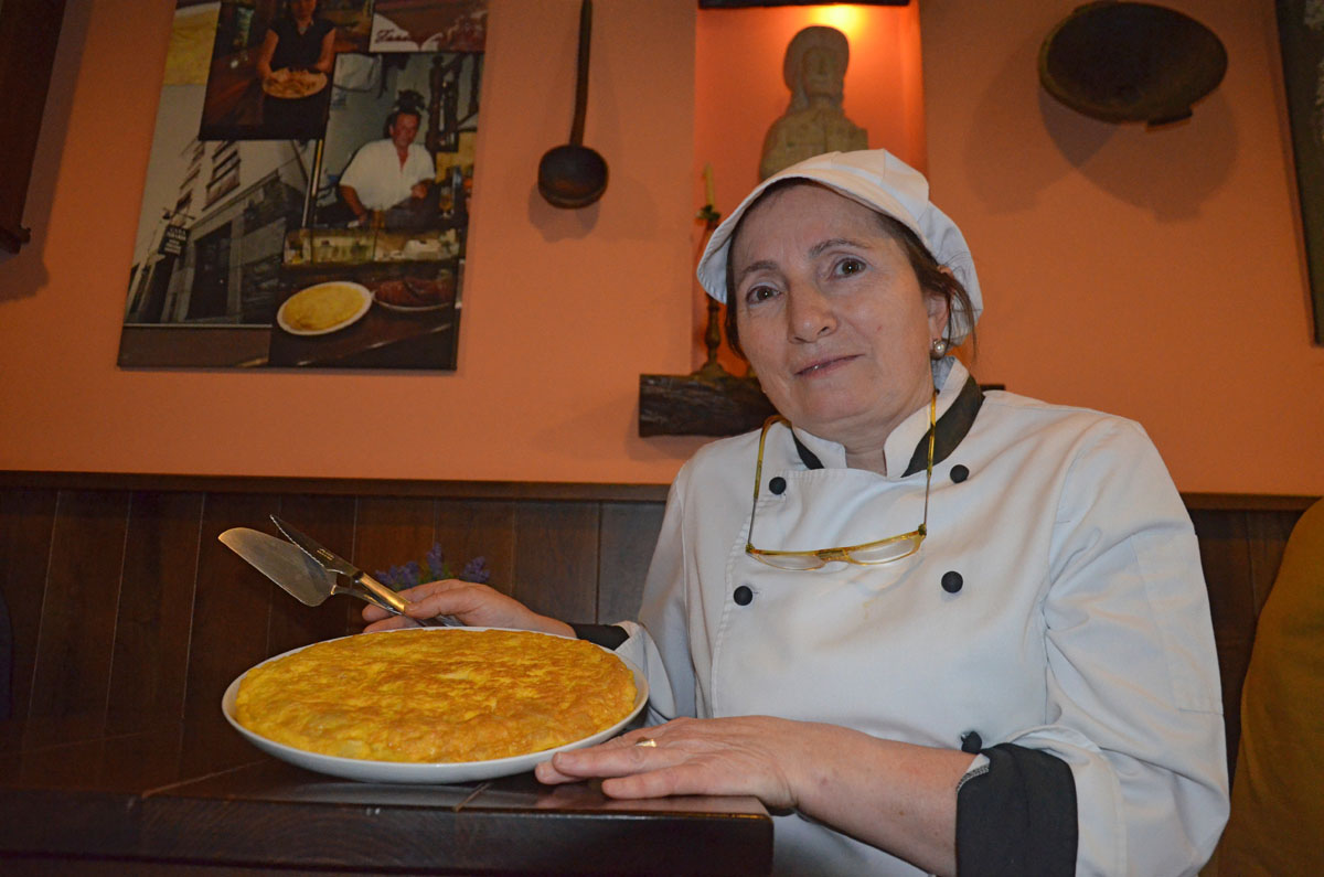 Aquí el plato se sirve jugoso y no muy hecho, con patatas cortadas en finos y pequeños trozos y bien mojadas en huevos de corral frescos, pero con una cuidada textura que se percibe incluso en la tapa más pequeña y que viene de una meticulosa elaboración en la que cada detalle está medido y cronometrado.
