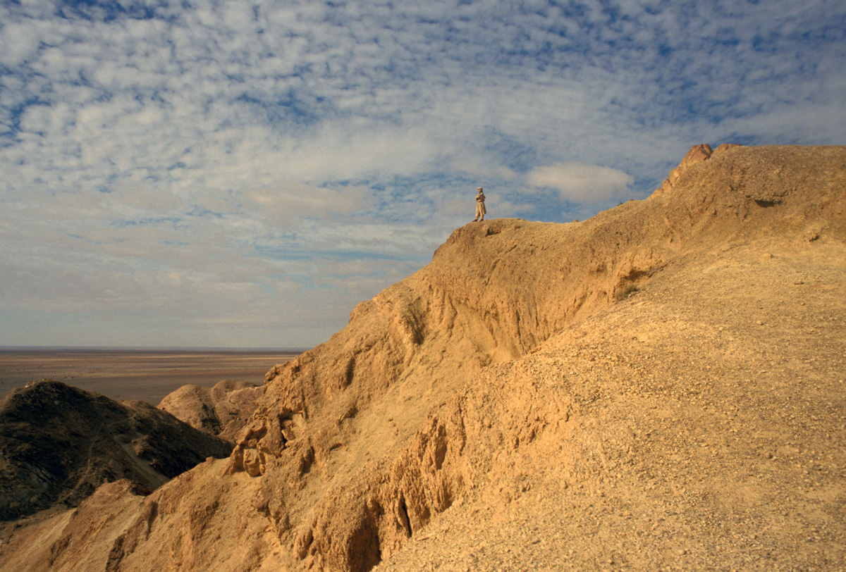 Estamos en lo que los tunecinos conocen como el Gran Sur, una enorme región de 90.000 kms cuadrados que se extiende al sur de Gafsa y que representa másde la mitad de Túnez. Es un desierto al sur de otro desierto: el que forma el gran lago salado de Chott el-Jerid, con sus solitarios y extraños paisajes llenos de espejismos y que cruzaremos más adelante, en una travesía que nos llevará a otro tipo de paisajes, también desérticos, los oasis de montaña, presididos por la ciudad de Tozeur.