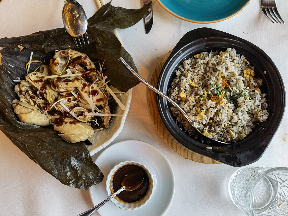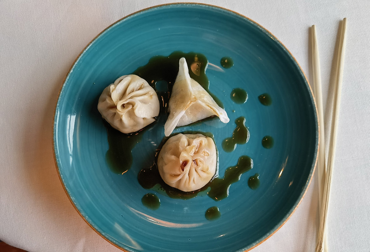 Por eso para una segunda ocasión nos podemos guardar su Arroz frito especial Shang Hai Station con solomillo y trufa o el que sirven en la vaporera de bambú envuelto en la hoja del loto, el Papillote de arroz con marisco. Y como también hay algo de fusión tenemos sus Langostinos al ajillo estilo chino, las Láminas de ternera con especias y verduras o su crujiente Lubina a la sal y pimienta, que puede ser compaticles con un ceviche de corvina.