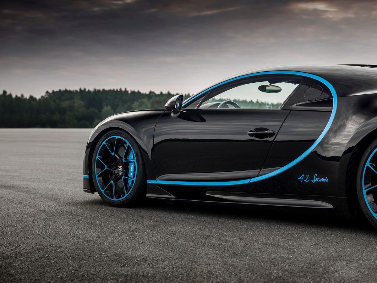 Cualquier dato de la resistencia que las piezas del coche sufren en esta prueba sorprenden. Los neumáticos (diseñados específicamente para el Chiron como lo fueron para el Veyron por Michelin), sufren una fuerza centrífuga que multiplican por 3.600 el peso de un gramo de goma. La válvula de cada neumático (que solo pesa 18 gramos) se convierte a 400 km/h en una pesada carga de 45 kilos.
