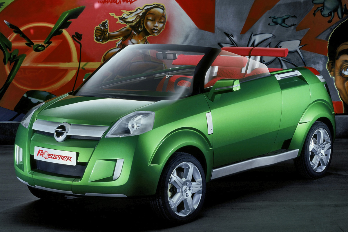 Sólo dos años después de la presentación del Junior, Opel desafió de nuevo las reglas de los coches pequeños convencionales con el atrevido Frogster, presentado en la edición de septiembre de 2001 Salón de Frankfurt. Entre sus novedosas soluciones, una firme persiana eléctrica que servía de techo, cuatro asientos abatibles individualmente y una excepcional versatilidad, ya que el conductor podía convertirlo en un roadster, un descapotable o una pick-up con sólo pulsar un botón de la PDA situada entre los dos asientos delanteros.