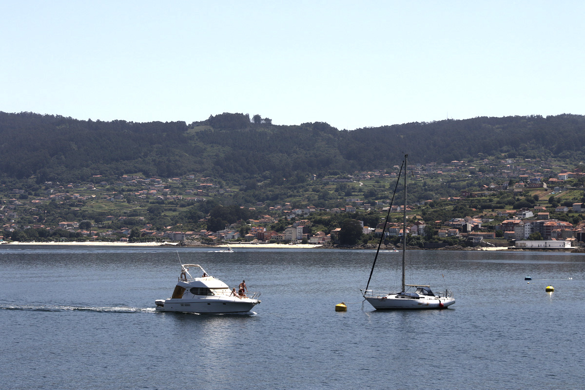 Comenzamos por la villa. En el centro neurálgico de Aldán comienza la Alameda y se extiende hasta el final del muelle. Con la marea baja se tiene una vista preciosa del arenal de la playa de Aldán, donde las almejas y el croque crecen como si no hubiera un mañana. Una de las imágenes más idílicas de este paseo es ver las barcas varadas en la arena, pacientes, esperando a que suba la marea y volver a navegar. Grandes medallistas del piragüismo español entrenan en estas aguas.