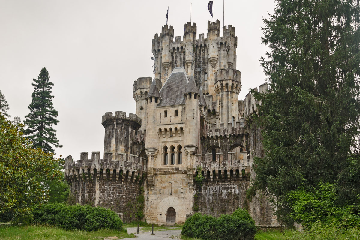 El castillo de Butrón es la encarnación viva de un castillo mágico, pero en el mundo real. Ubicado en Gatica (Vizcaya), en Butrón no sabemos si hay hadas, pero el resultado de su fusión de arquitectura medieval con elementos nórdicos -fruto de una reconstrucción en el siglo XIX- apuesta abiertamente por lo fantástico, muy al estilo germánico que parece que tanto gustaba al Marqués de Cubas. Siempre es bonito llegar a este lugar a pie, atravesando su maravilloso jardín con casi cuatro hectáreas. Al final, en un claro, aparece esta locura. Se trata de la supremacía de la estética, ya que parte de sus “avalorios” tienen más valor ornamental que práctico, pero el resultado es espectacular. Todo tiene un punto irreal y un tanto operístico… Estamos en el lugar perfecto para ambientar ese cuento de hadas en el que no falta siquiera una mazmorra donde -quién sabe- podría estar recluido algún príncipe azul…