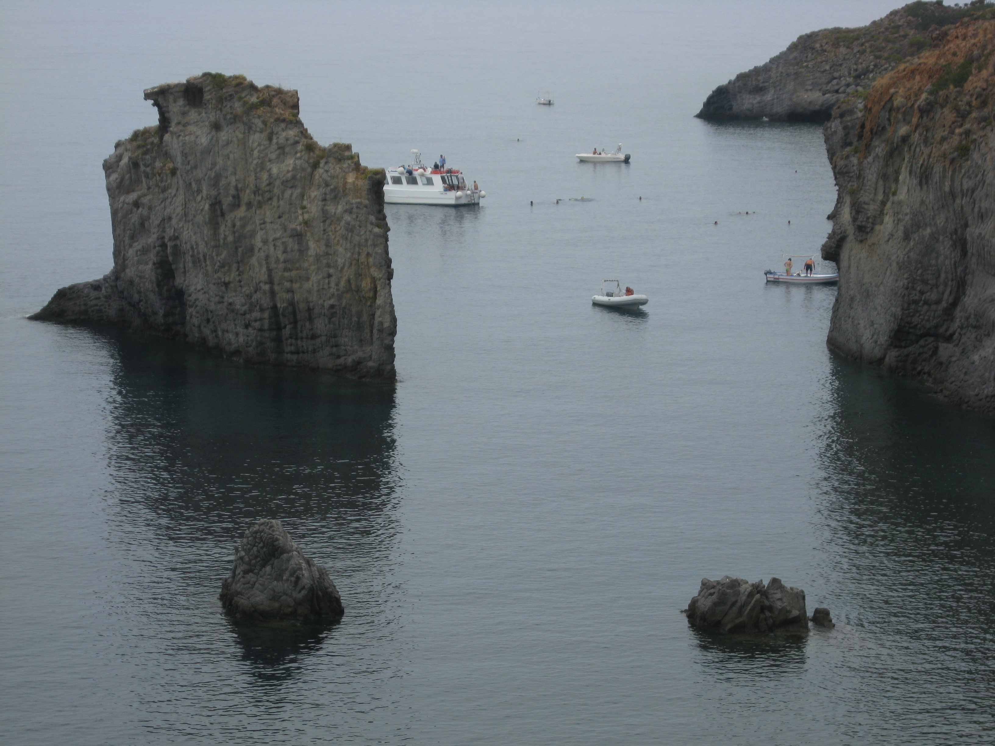 En un primer día se fondea cerca del muelle de Scari, donde se encuentra el pueblo de San Vincenzo, en las faldas de la montaña. A pesar del volcán, la naturaleza es generosa en la isla, y las laderas están tupidas de una maravillosa vegetación de colores verdes, ocres y marrones con chumberas, higueras, olivos y otras plantas que dibujan una estampa inconfundiblemente mediterránea. La iglesia de cúpula gris y campanario rojo completan el cuadro. Para los nostálgicos del celuloide, el mayor atractivo es ver el lugar donde se rodará la película “Stromboli, Terra di Dio” que inmortalizara Ingrid Bergman bajo la dirección de Roberto Rosellini en 1950.