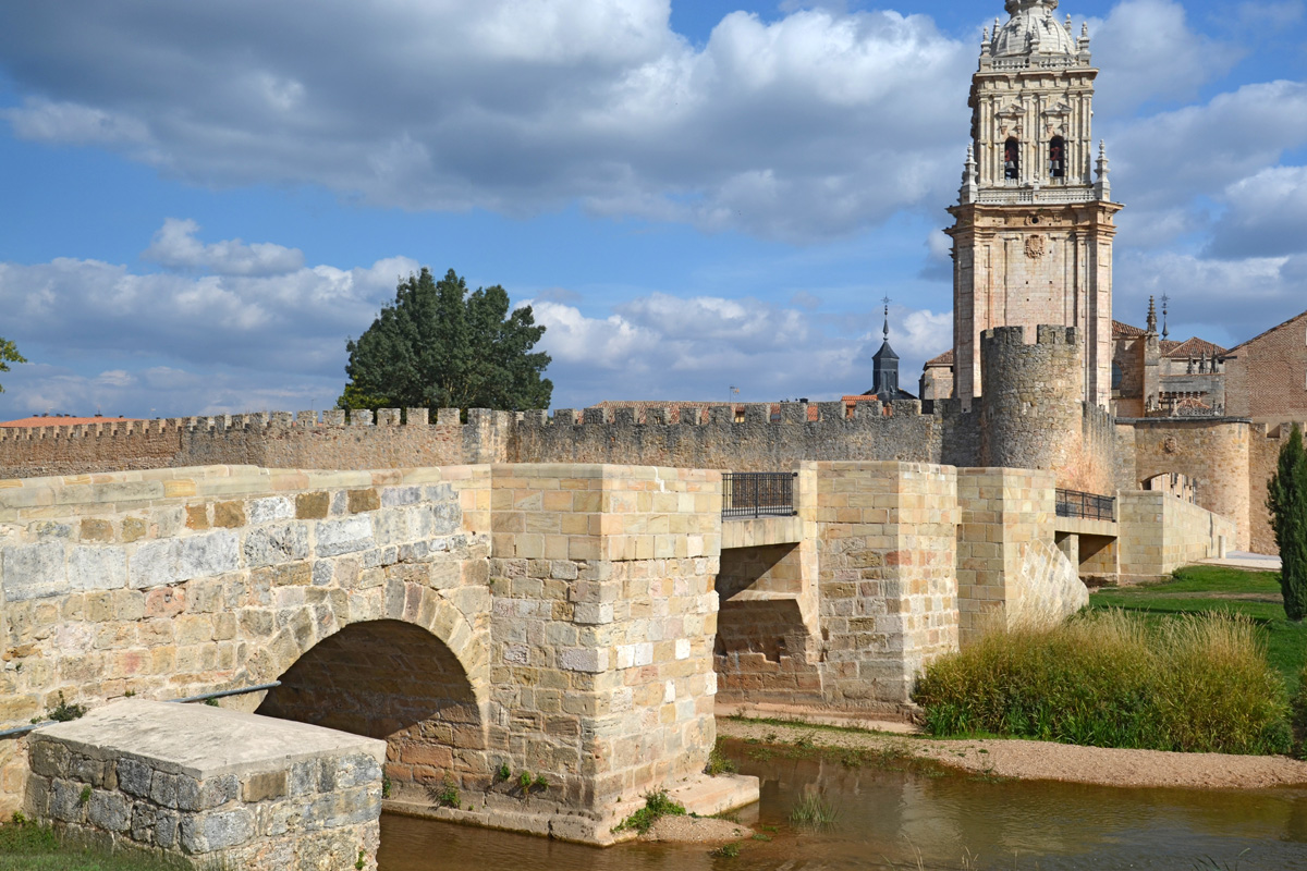 Nos da la bienvenida su clásica muralla, que acota varios monumentos. la Catedral de Nuestra Señora de la Asunción, que hace de la mezcla de estilos románico, gótico y renacentista su seña de identidad, el Palacio Episcopal y la Universidad de Santa Catalina, ubicados respectivamente en el periodo gótico y el renacentista.