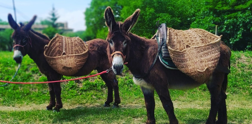 Desde esta masía del siglo XVII situada en el Valle de Llémena, sus propietarios Eirene y Donatello, nos proponen descubrir los parajes y vistas de esta tierra de volcanes y aguas acompañados de unos simpáticos burros de raza catalana que harán de portadores de utensilios y nos acompañarán en las mejores panorámicas del valle. Antes de la salida, nuestros guías, Tai y Paula, harán una breve introducción sobre las características de los burros y la manera de relacionarnos con ellos durante la ruta. Los burros son animales tranquilos y el paseo no tiene mucha dificultad. Es posible el avistamiento de águilas y se disfruta mucho del paisaje con la parada en el río Llémena donde parar a bañarse si el tiempo acompaña y a tomar el delicioso picnic que han preparado en Masía Can Pou: ensalada de huerta propia, quesos de La Balda de Granollers de Rocacorba, fruta fresca y un dulce casero.