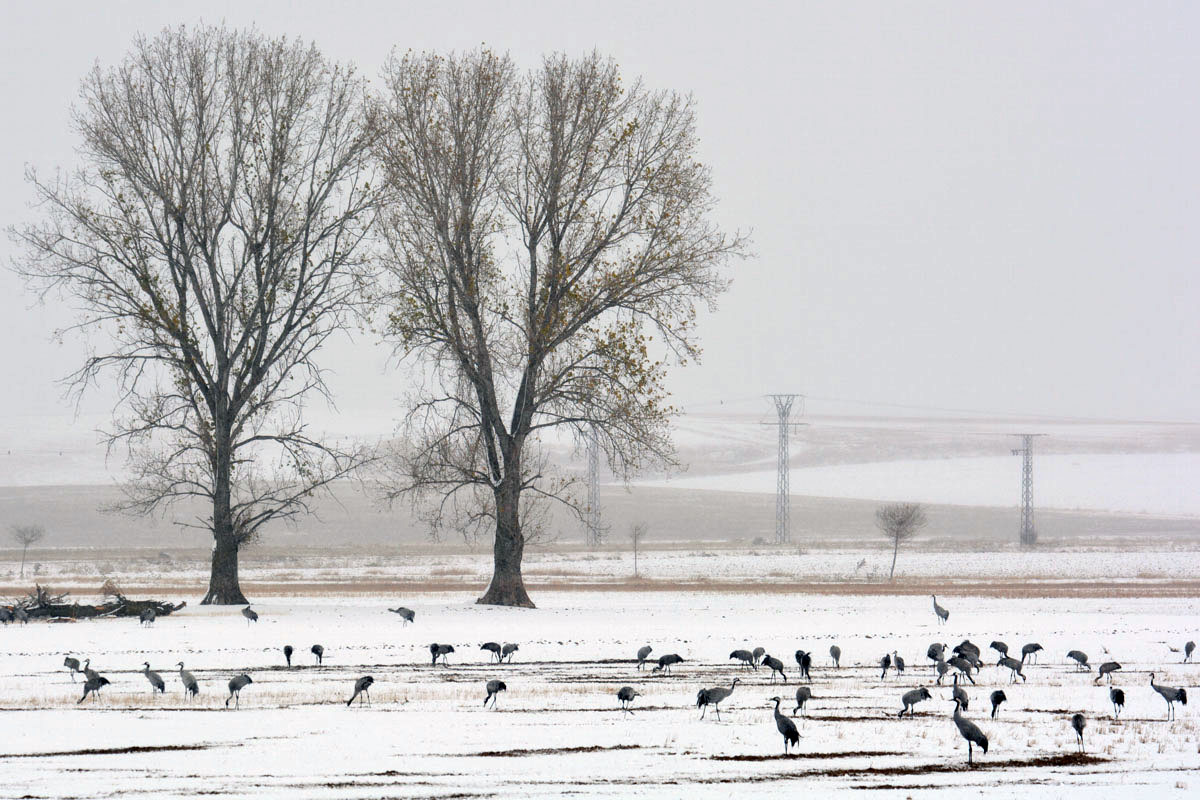 Aprovechando la situación, una visita a la laguna de Gallocanta nos dejará seguro sin palabras. En plena reserva natural, la laguna de agua salada más grande de la Península Ibérica se ganará sin esfuerzo toda nuestra atención, pero entre noviembre y febrero la magia del lugar se multiplica con los bandos de grullas que cada temporada llegan en masa al anochecer. Poder ser testigos de esta escena no tiene precio.
