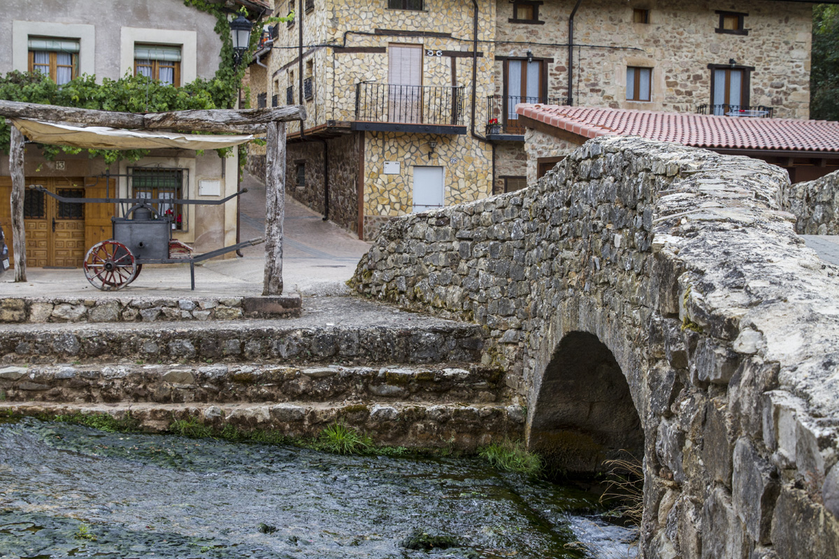 Y por encima de estos ríos, tenemos los puentes. También los puentes continúan abriendo caminos mientras cautivan a los paseantes. Como el puente de Briñas, entre Haro y Briñas, rodeado de viñedos que dan aún más majestuosidad al estilo gótico que muestra orgulloso levantado sobre un meandro en forma de herradura. O el puente medieval de Torrecilla en Cameros, todo de piedra, que saluda desde lo alto al río Iregua que pasa bajo su arco desde el siglo XV. Y otros puentes como el de Laidiez, cerca de Ribafrecha, este del siglo XVI, que salva el río Leza, en el que los vecinos, tanto los de Leza como los de Ribafrecha, ya que es la vía de comunicación terrestre entre los dos pueblos, practican la pesca cuando las circunstancias lo permiten.O el original puente de la Hiedra, como sacado de un cuento narrado en la zona de las 7 Villas. Acercarse a él, y ver de cerca esta construcción medieval del siglo XIV completamente cubierta por un manto de hiedra es de esas experiencias que quedan grabadas en la memoria mucho tiempo después de haberlas vivido. O el puente romano de Cihuri, testigo de siglos de vida que han transcurrido bajo la atenta mirada de sus tres ojos, donde los niños saltan todas las tardes de verano desde las piedras de la orilla.