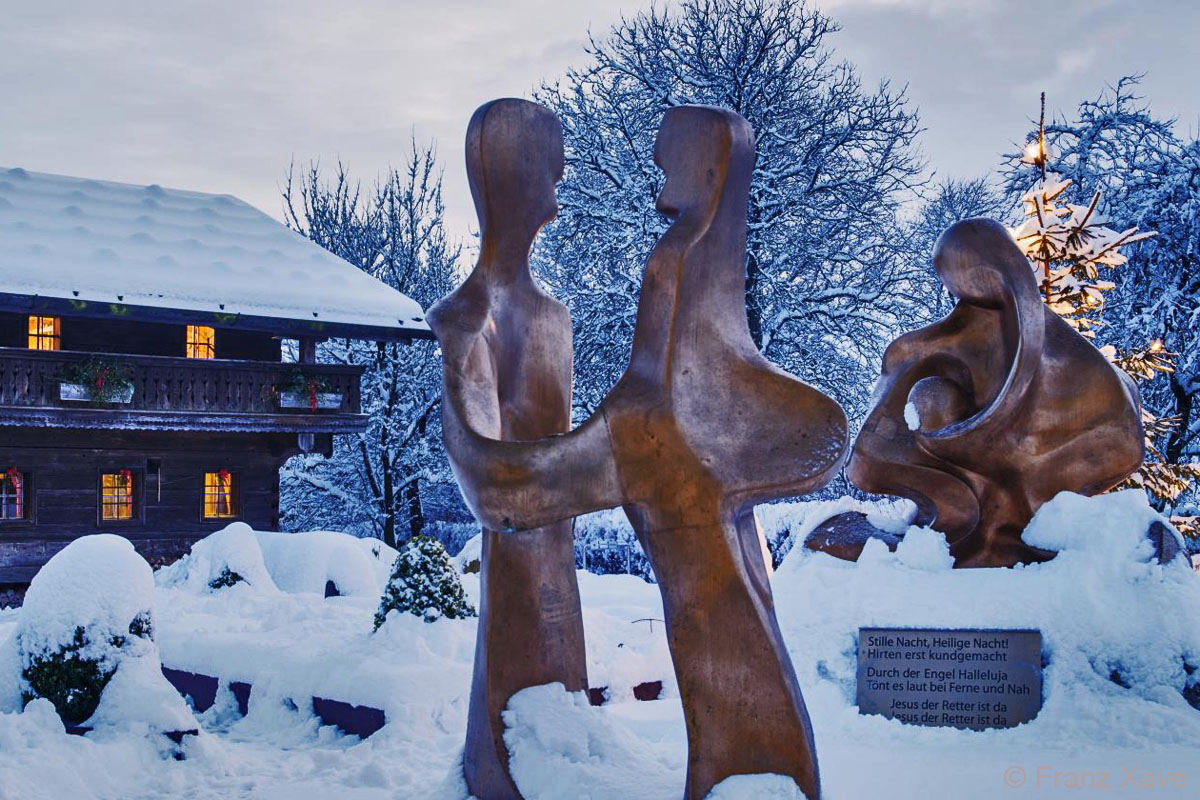 Aquí es donde conoció al sacerdote Joseph Mohr. Este debió quedar impresionado por la habilidad musical de Franz y el 24 de diciembre de 1818 le pidió que compusiera una melodía adecuada para un poema que había compuesto dos años antes en Mariapfarr, harto de las miserias de las Guerras Napoleónicas. Franz escribió la melodía ese mismo día. Seis estrofas y una sencilla melodía sería el “hit” navideño más famoso del mundo.